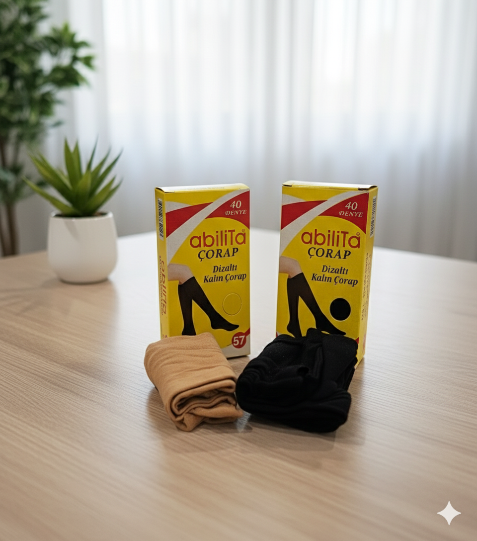 0 DEN (denier) opaque socks that reach just below the knee (knee-high). The high denier count indicates they are a thick, durable, and non-sheer option, suitable for providing warmth and coverage. They are offered in multiple colors, as shown by the black and nude/tan options.